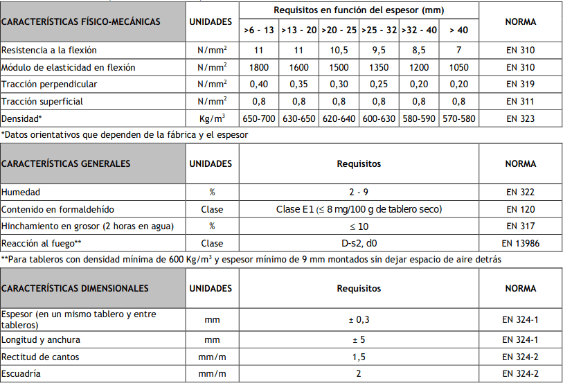 Según las colas utilizadas, se clasifican según la norma UNE EN 312 en: